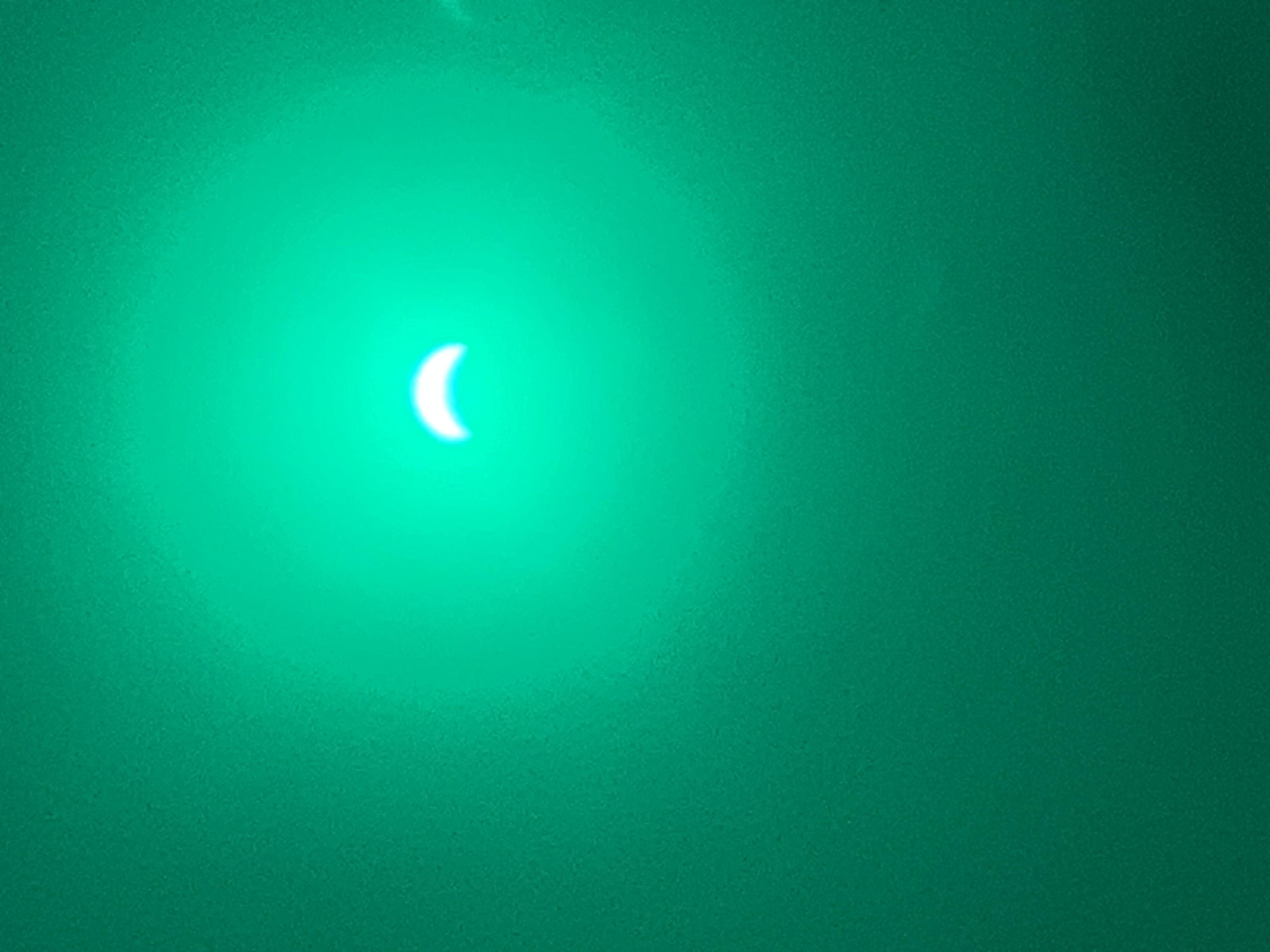 While the unfiltred sun is too bright to directly observe the obstruction, the reflection in the phone’s lense shows the destinct sickle.